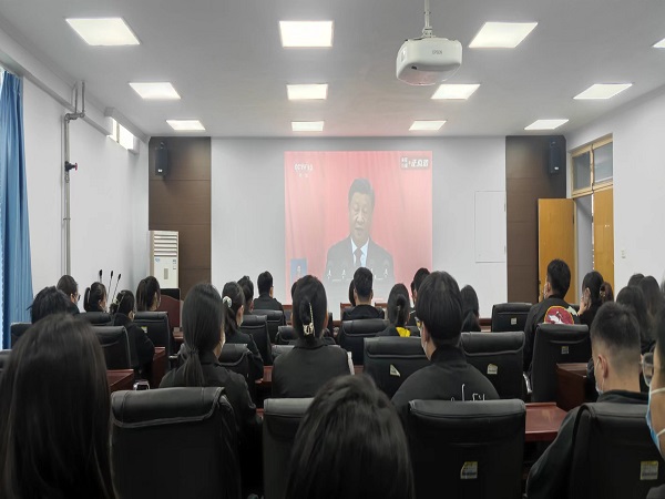 新思想引领新时代,新使命开启新征程。10月16日上午10时,中国共产党第二十次全国代表大会隆重开幕。申慱sunbet娱乐党总支教工第一、第二党支部在信息楼213会议室,学生第一、第二党支部在信息楼713会议室集体观看大会开幕式,并聆听习近平总书记代表第十九届中央委员会向大会作的报告。