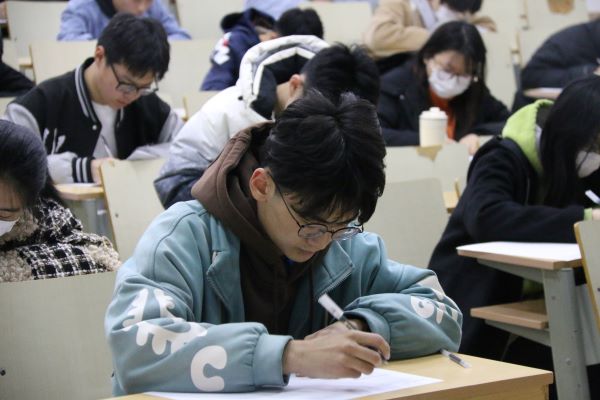 本次考试采取闭卷答题形式,包括填空、选择、简答、论述四种题型,试题涵盖党史、《中国共产党章程》应知应会等方面的内容,旨在真实检测学员们对于党的理论及党史知识的学习成果,端正入党态度。为保证考试的公平性,学生按照各自考号间隔而坐,申慱sunbet娱乐安排组织成员全程巡视监督。考试开始前,考生入场签到,考务人员对入场考生身份进行校验核实,防止替考等现象出现。考务人员就考场纪律、考试要求、注意事项等事宜进行了简要说明,确保了本次考试的顺利进行。