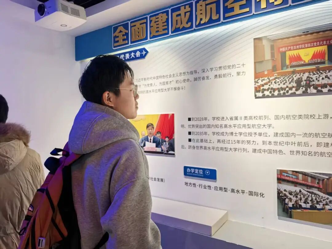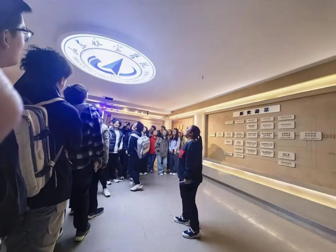 在老师们的引领下,同学们循着历史脉络认真观摩每一件展品,仔细聆听每一段故事,系统了解了学校在教学科研、学科建设、人才培养、航空特色发展等方面取得的重大成就,对学校的办学定位、发展理念与时代使命形成了更为深刻且立体的认识。