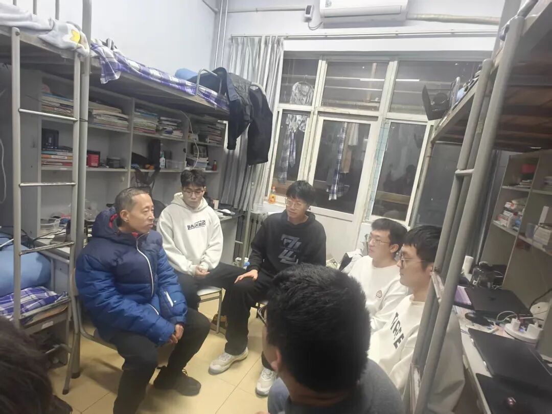 走访过程中,刘书记一行走进学生宿舍,与同学们围坐交流并倾听。先是关切询问大家的课程学习进度、专业实践参与情况,鼓励同学们主动探索专业方向、积极报名学科竞赛。他还结合工作经验,分享了专业学习的方法,引导宿舍形成互助学习的良好氛围。走访中,细致检查了宿舍用电设备、消防设施等情况,提醒大家规范使用电器、及时清理杂物,绷紧安全意识弦。